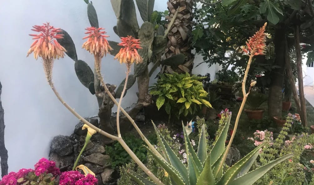 An diesem Jahr führte die Prozession an unserm Haus vorbei und es wurde entsprechend geschmückt. Die Madonna, die ehemals meiner Oma Enriqueta und später meiner Mutter gehörte und jetzt in Casa Nueva steht, wurde geschmückt und ebenfalls Fenster und Haustür. Die Nachbarn haben uns natürlich gesagt wie man das macht, denn ich wusste es nach der langen Zeit in Deutschland nicht mehr. Es war ein sehr schönes Fest und eine bleibende Erinnerung.